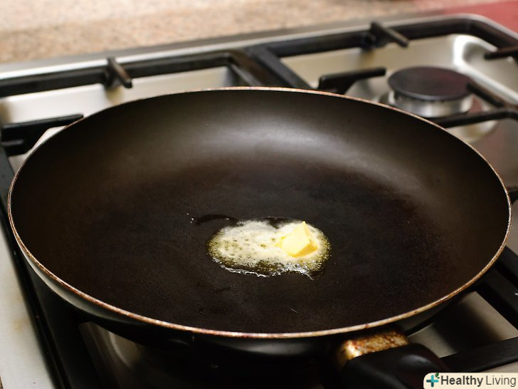 Розтопіть вершкове масло.покладіть вершкове масло на сковороду і поставте її на плиту на середній або помірно середній вогонь. Зачекайте, поки масло розтане і рівномірно покриє дно сковороди.