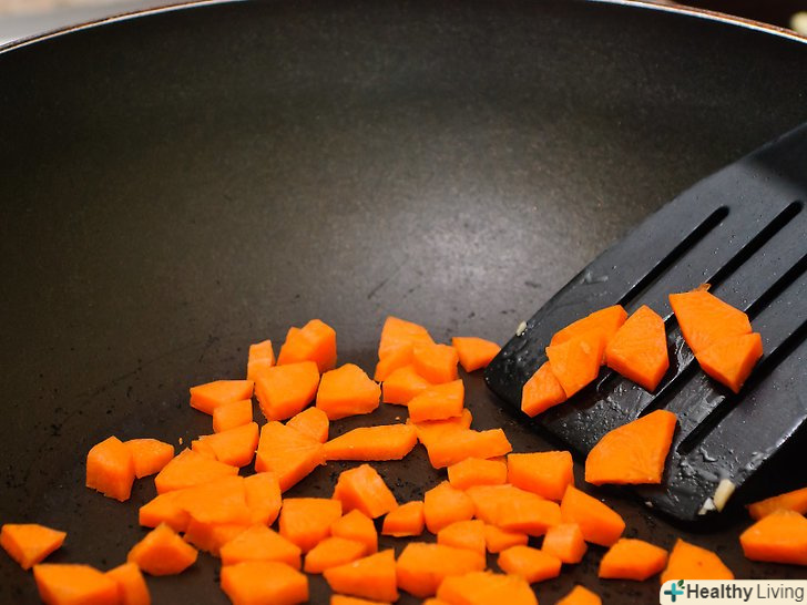 Обсмажте часник, цибулю і сосиску.Покладіть всі три інгредієнти в нарізаному вигляді в гаряче масло і готуйте, регулярно помішуючи, 2-3 хвилини.- Цибуля і часник придбають аромат. Зачекайте, поки цибуля стане злегка прозорим. Часник отримає насичений колір, але не повинен при цьому підгоріти.
