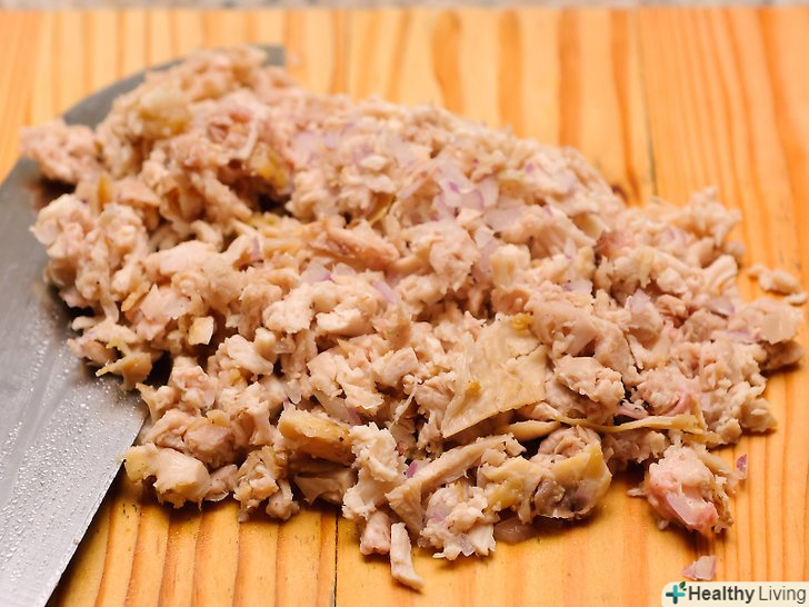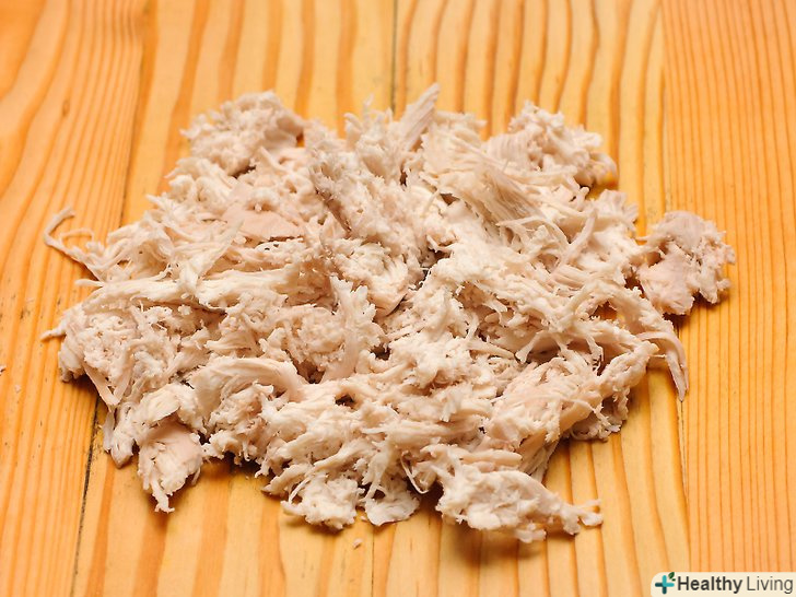 Наріжте курятину.дістаньте курку з бульйону і дайте їй трохи охолонути. Коли вона досить охолоне, за допомогою двох виделок розділіть м'ясо на великі скибочки.- Також можна нарізати приготовлену курятину на маленькі кубики. У будь-якому випадку це справа особистих переваг.