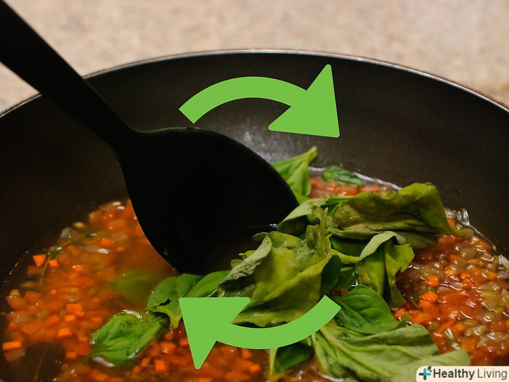 Вмішайте шпинат.додайте в суп 225 г шпинату. Ви можете подумати, що поклали занадто багато шпинату, але млявого шпинату вийде менше.