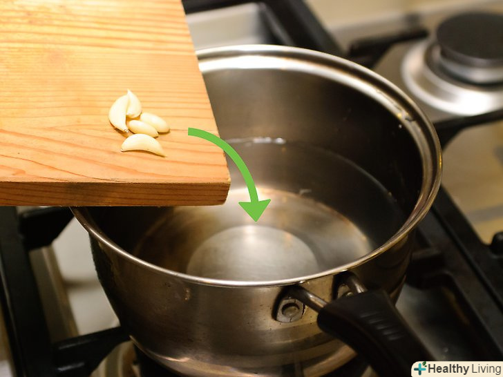 Очистіть 4-5 зубчиків часнику і киньте їх в каструлю. можете додати трохи більше або менше, в залежності від вашого бажання.
