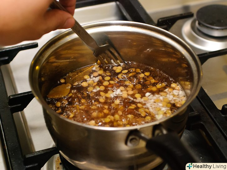 Закип'ятіть воду.після того, як вода закипить, зменшіть вогонь до середнього, і варіть сочевицю протягом 35-45 хвилин, в залежності від того, скільки знадобиться, щоб вона розм'якшилася.