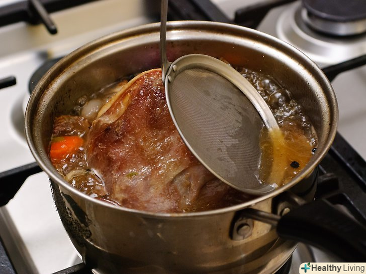 Використовуйте шумівку, щоб зняти піну, яка піднімається до верху.
