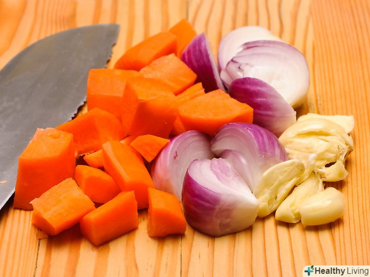 Наріжте вибрані овочі на шматки.додайте в яловичий бульйон якісні овочі-морква, селера, цибуля і часник.