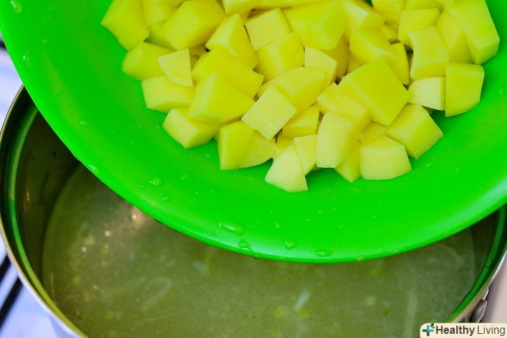 Додайте картоплю, цибулю, сіль і перець в каструлю.