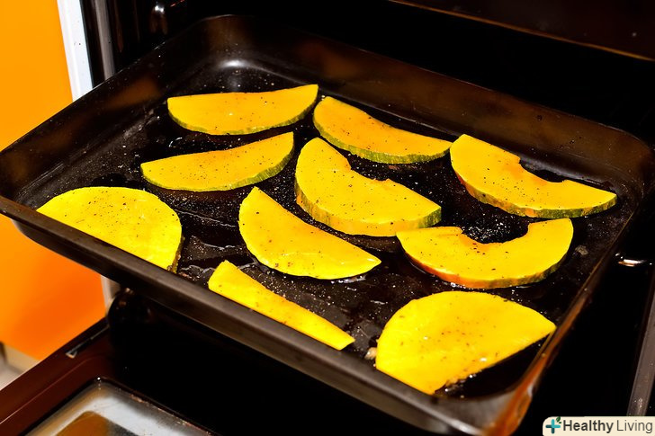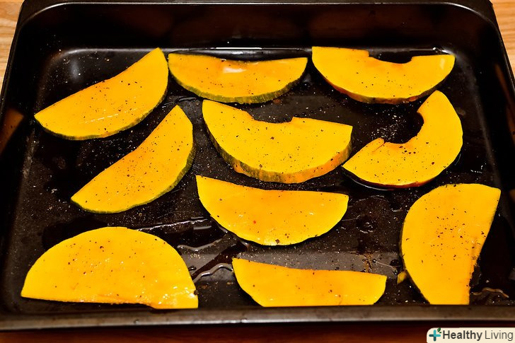 Розігрійте духовку до 250 градусів Цельсія.помістіть гарбуз одним шаром на два листи для запікання.