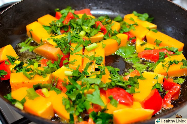 Обсмажуйте овочі протягом 12-14 хвилин, постійно помішуючи.коли ви закінчите, гарбуз повинен бути м'яким.
