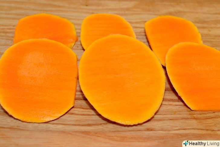 Розігрійте гриль на середньому вогні.на обробній дошці розріжте гарбуз горизонтально на довгі смужки, товщиною приблизно 0,7-1 см.