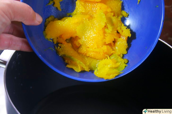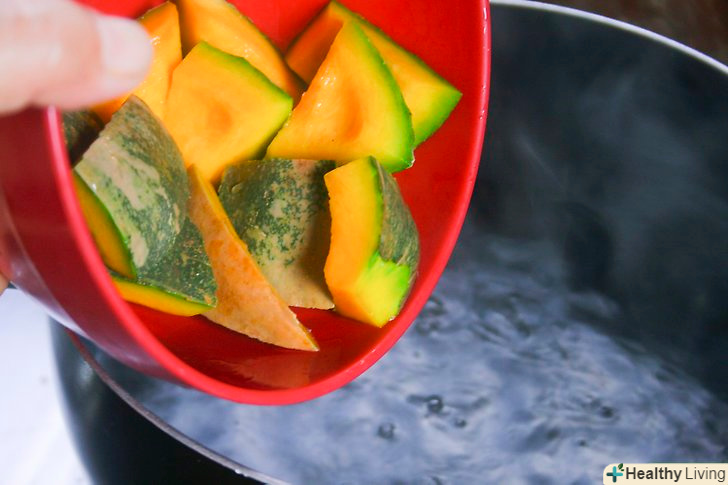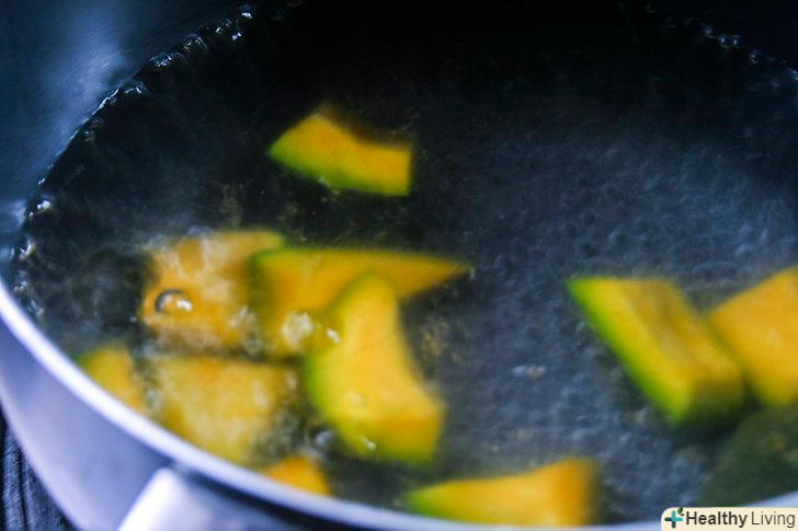 Наповніть велику каструлю водою.додайте гарбуз і доведіть до кипіння. Зменшіть вогонь.