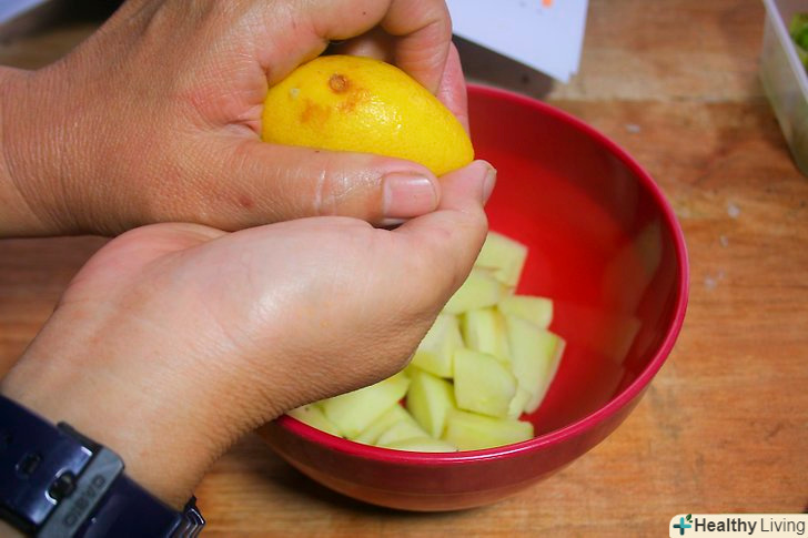 Додайте нарізані яблука, лимонний сік і залишився хрін в маленьку миску. Гарненько змішайте.