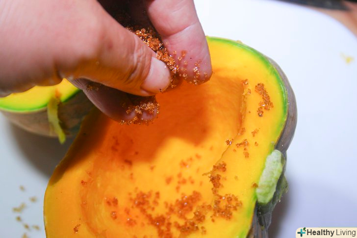 Розмажте ½ столової ложки вершкового масла на кожну половину гарбуза.кожну половинку рівномірно посипте коричневим цукром і кленовим сиропом.