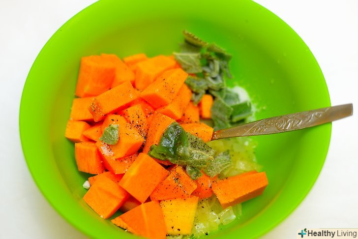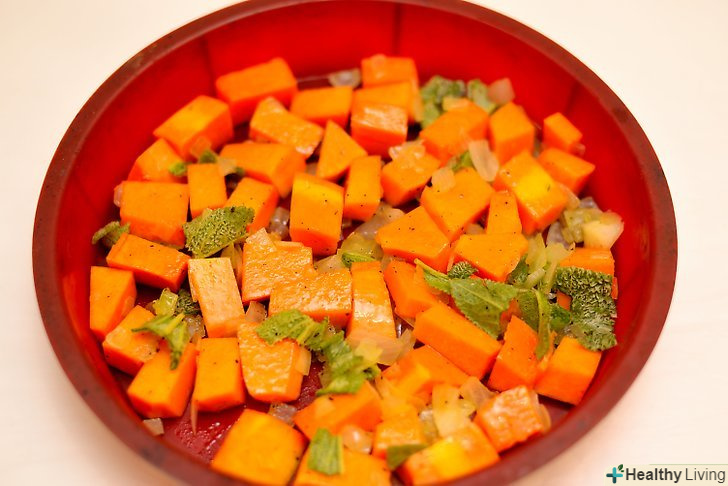 Запікайте.помістіть дану суміш на деко і запікайте протягом 40 хвилин, поки гарбуз не розм'якшити.
