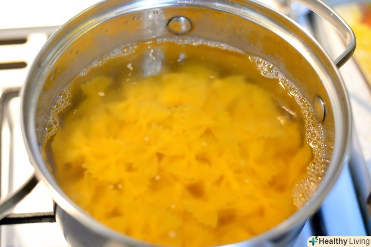 Приготуйте макарони.поки гарбуз готується, наповніть велику каструлю на ¾ водою і дайте закипіти. Додайте столову ложку оливкової олії, щіпку солі, а потім додайте макарони-бантики. Варіть до аль денте (8-10 хвилин). Процідіть макарони і відкладіть в сторону. [2] Drain the pasta and set to the side.