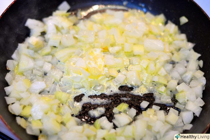 Підсмажте цибулю і часник.у великій каструлі розтопіть ¼ склянки олії на середньому вогні. Додайте часник і цибулю і готуйте 8-10 хвилин до розм'якшення і появи аромату.