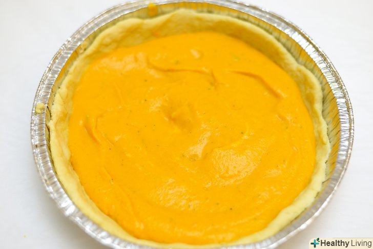 Змішайте інгредієнти для начинки.коли гарбуз охолоне, зішкребіть 2 склянки м'якоті. Додайте м'якоть і всі спеції в кухонний комбайн або блендер, потім додайте молоко, яйця, цукор і збийте в кремоподібну масу.