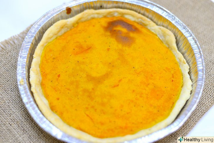 Наповніть пиріг начинкою.за допомогою гумової лопатки, зішкребіть гарбузову масу і заповніть нею гарбуз, потім рівномірно перемішайте.