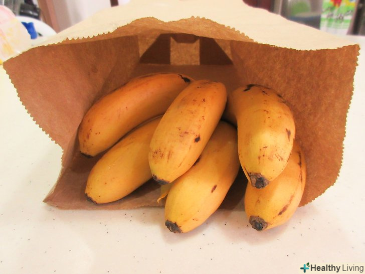 Легенько загорніть банани в коричневий паперовий пакет.Коричневий паперовий пакет буде стримувати Етиленові гази, які виділяють банани в процесі дозрівання.