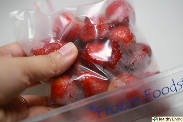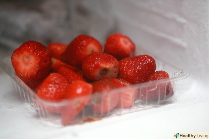 Покладіть полуницю в контейнер, який підходить для заморожування продуктів.добре підходять пластикові контейнери і контейнери з товстого скла, однак спочатку переконайтеся, що вони підходять для заморожування. Інший спосіб-заморозити ягоду в пластиковому пакеті для заморожування з замикає кліпсою. Не укладайте полуницю занадто щільно, інакше ягоди змерзнуться в єдину масу. Ми радимо вам залишити контейнер незаповненим зверху на 1.5-2 сантиметри, тому що при заморожуванні ягода збільшується в об'ємі.- Якщо ви заморожуєте ягоду "сухим" способом, без додавання цукру або сиропу, найкраще буде розсипати ягоду вільно в один шар на деко або піддон морозильної камери і заморозити так протягом декількох годин. Після цього заморожені ягоди можна розкласти по контейнерах або пакетам. Таким способом ви отримаєте окремі ягоди. які можна буде діставати по одній, а не змерзлий, єдиний конгломерат.