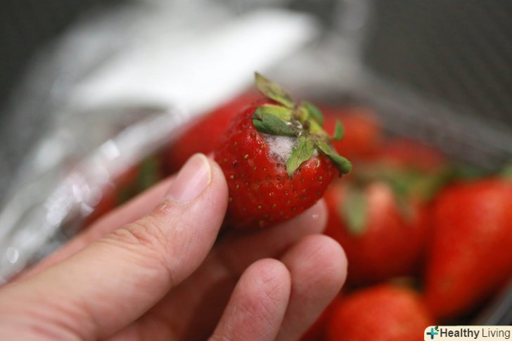 Відразу ж викидайте ягоди, на яких почала рости цвіль.цвіль може поширюватися з однієї ягоди на іншу і швидко зіпсувати всю куплену упаковку полуниці. Звичайно, вам хочеться купити упаковку, повну свіжої, червоної полуниці без ознак цвілі, але, на жаль, серед хороших ягід завжди трапляється одна-дві несвіжих. Переберіть ягоди відразу ж після покупки і викиньте всі пом'яті, м'які і потемнілі ягоди, які можуть швидко зіпсуватися.- Це може бути застосовано і до інших запліснявілих фруктів, які зберігаються поруч з полуницею.