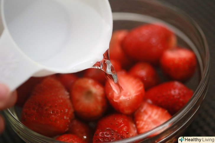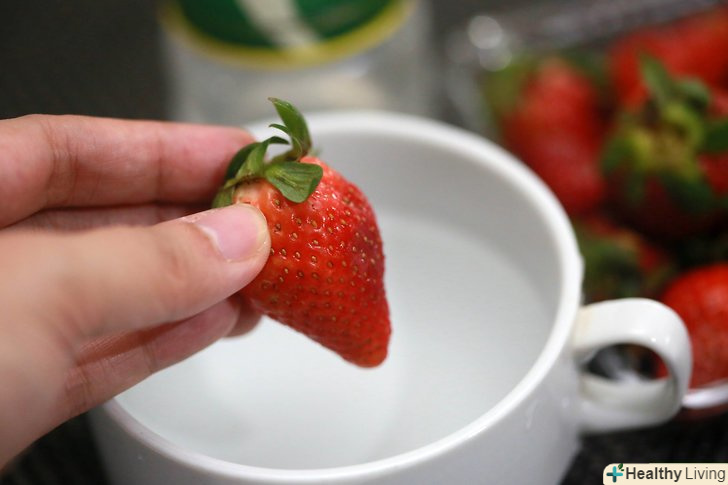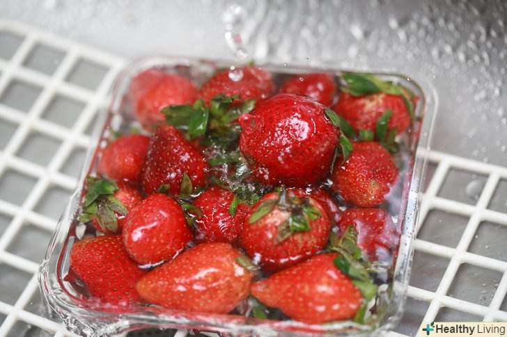 Ми рекомендуємо промити ягоду в розчині оцту.суміш столового оцту і води може краще видалити шкідливі бактерії і віруси з поверхні ягід, ніж звичайна вода, але термін зберігання полуниці від цього не збільшується.[3][4] ягоди псуються, навіть якщо ми вбиваємо всі шкідливі бактерії, які руйнують полуницю, і велика кількість рідини тільки прискорює псування ягід. Якщо ви купили упаковку полуниці, в якій виявилося багато ягід, уражених цвіллю, переберіть і викиньте зіпсовані, а що залишилися обробіть за допомогою спрею розчином, що складається з 1 частини оцту і 3 частин води. В інших випадках промивайте ягоду водою з додаванням оцту безпосередньо перед вживанням в їжу.- Руками акуратно промийте кожну ягоду, це допоможе краще видалити бруд і хвороботворні організми. Недостатньо просто сполоснути ягоди під проточною водою.