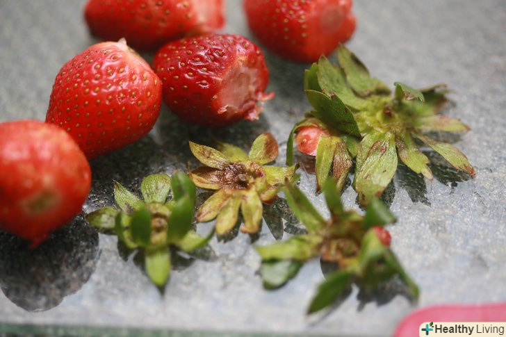 Видаліть неїстівні зелені чашолистки. Полуниця зазвичай продається разом з чашолистками. Їх потрібно видалити перед заморожуванням.