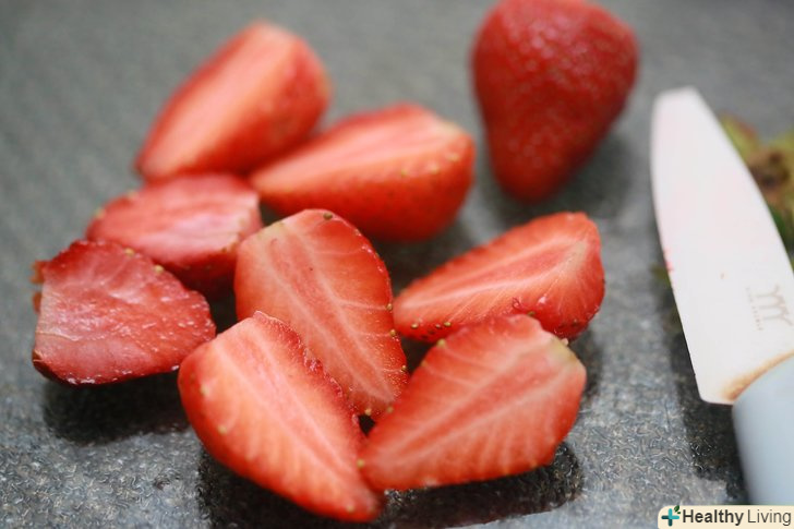 Подумайте, в якому вигляді ви хочете заморозити ягоду.ви можете заморозити ягоди цілком, але якщо ви в подальшому збираєтеся використовувати цю полуницю для приготування різних страв, можливо, вам буде зручніше заздалегідь нарізати ягоду на шматочки потрібного розміру або розім'яти в пюре. Якщо ви заморозите, а потім розморозити ягоди, їх буде важче розрізати, хоча пюре з розтанула Ягоди ви зможете зробити без праці. Ягоди великого розміру, нарізані на шматочки, можна заморозити і розморозити більш рівномірно. [7]- Якщо ви не знаєте, в якій формі заморозити ягоду, подумайте, в яких стравах ви її плануєте використовувати. Полуничне пюре годиться для приготування фруктових коктейлів і смузі, нарізана шматочками добре підходить для прикраси тортів і вафель, а цілі ягоди полуниці можна використовувати в шоколадному фондю.