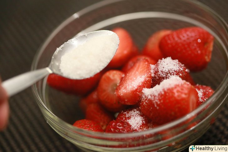Додайте цукор або цукровий сироп (за бажанням).якщо ви додасте в ягоду цукор або цукровий сироп, це допоможе краще зберегти її смак, аромат і форму, але не всім подобається, що ягоди від цього стають занадто солодкими. [8] якщо ви вирішили піти цим шляхом, візьміть 100 грамів цукру на кожен літр ягоди, цілої, нарізаної або у вигляді пюре. Інший спосіб-приготуйте насичений цукровий сироп, змішавши цукор і теплу воду в співвідношенні 1:1, потім остудіть його в холодильнику і залийте ягоди, щоб вони були повністю покриті сиропом. [9][10]- Цукор або цукровий сироп краще додавати в ягоду, коли вона вже розкладена по контейнерах. Однак вирішити, чи будете ви додавати цукор, краще заздалегідь, щоб залишити в контейнері місце для цукру або сиропу.