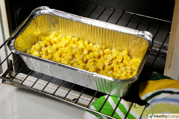 Розігрійте духовку до 175ºС.заздалегідь розігрійте духовку, щоб вона мала стабільну температуру, і заморожена Кукурудза пропеклася рівномірно. Більшість духовок розігріваються належним чином тільки через 30-45 хвилин.[10]