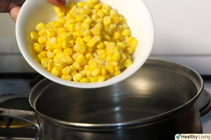 Закиньте кукурудзу в киплячу воду на 2-3 хвилини.коли вода почне кипіти, покладіть в каструлю кукурудзу. Перемішайте дерев'яною ложкою, щоб зерна не злиплися, і щоб вся Кукурудза приготувалася рівномірно.[1]- Через 2-4 хвилини дістаньте ложкою одне або два зернятка і перевірте готовність.