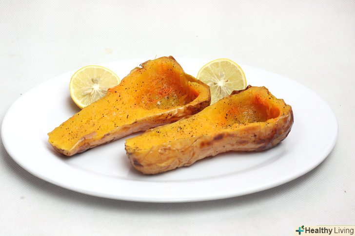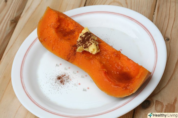 - Ви також можете подати гарбуз, не розминаючи м'якоть. Просто розріжте гарбуз на четвертинки або так, як вам подобається. Посипте її коричневим цукром, вершковим маслом і корицею або спробуйте інші приправи, наприклад, сіль і перець.