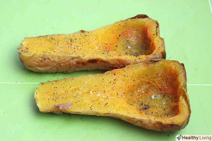 Приправте гарбуз і подавайте. Посоліть і поперчіть за смаком.- Соліть і перчіть за смаком, але якщо ви не знаєте, скільки використовувати, візьміть приблизно 1/2 ч. л. (2,5 мл) солі і 1/4 ч. л. (1,25 мл) перцю на половинку гарбуза.