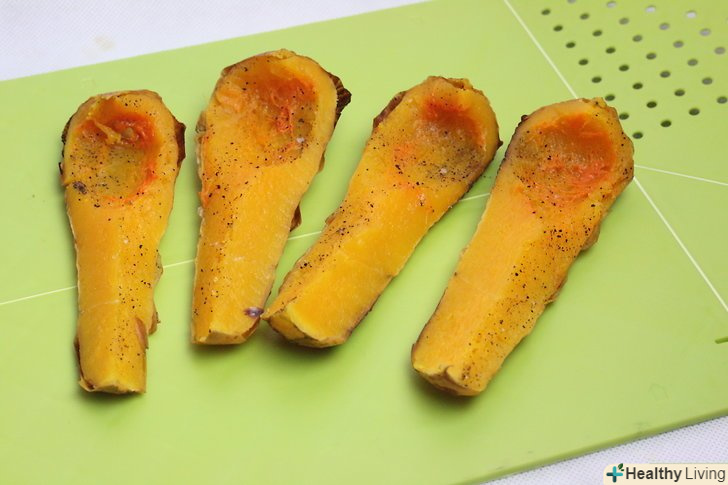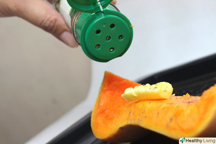 - Посоліть і поперчіть гарбуз. Робіть це за смаком, але якщо ви не знаєте, з чого почати, використовуйте приблизно 1/4 ч.л. (1,25 мл) солі і 1/8 ч. л. (0,62 мл) перцю на четвертинку.
