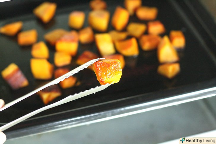 Обсмажуйте протягом 45-50 хвилин.перевірте готовність гарбуза виделкою; вона повинна бути м'яка.- Можливо, гарбуз не буде цілком рум'яної, але на ній з'являться рум'яні плями, особливо по краях.