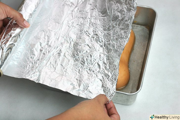 Накрийте фольгою.щільно накрийте верхню частину форми алюмінієвою фольгою.- Якщо ви використовуєте антипригарну фольгу, розташуйте її антипригарною стороною до гарбузі.