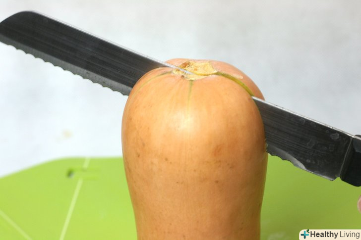 - Відріжте 2,5 см від верхньої і нижньої частини гарбуза. Викиньте відрізане.[4]