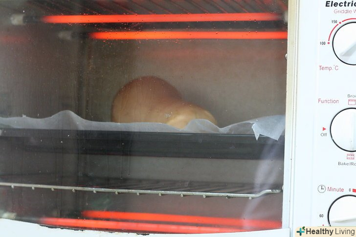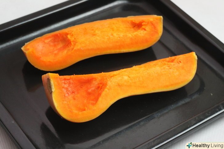 Розігрійте духовку до 180 градусів Цельсія.підготуйте деко з невисокими бортиками.- Немає необхідності змащувати деко, але при бажанні ви можете вистелити його алюмінієвою фольгою, щоб запобігти прилипання гарбуза.