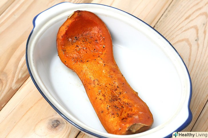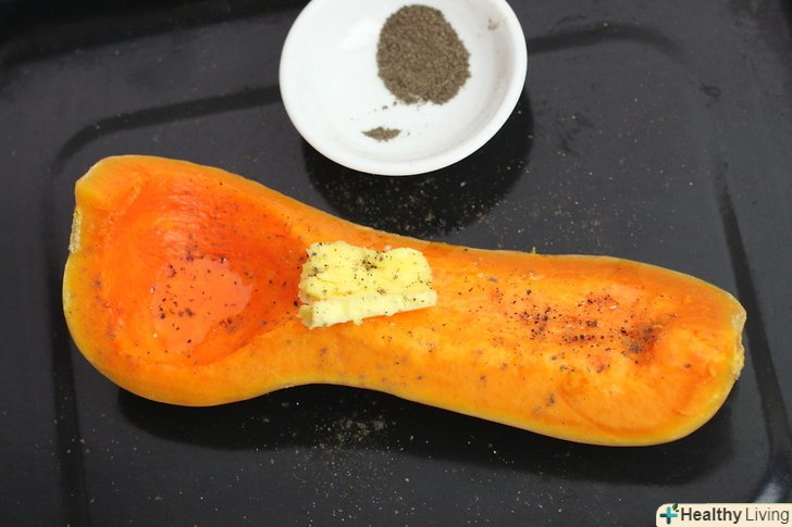 - Соліть і перчіть за смаком, але якщо ви не знаєте, скільки використовувати, візьміть приблизно 1/2 ч. л. (2,5 мл) солі і 1/4 ч. л. (1,25 мл) перцю на половинку гарбуза.