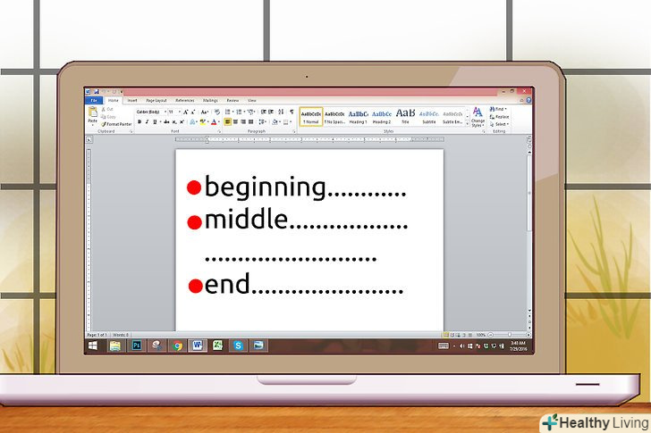 У монологу повинні бути початок, середина і кінець.якщо ви збираєтеся виділити час, щоб поставити залишок історії на паузу, і дозволити герою довгий монолог, можна точно сказати, що текст повинен мати структуру, як і будь-який інший вид тексту. Якщо це історія, вона повинна мати сюжетну лінію. Якщо це пихата тирада, то вона повинна перейти в що-небудь ще. Якщо це благання, то необхідно підвищувати загострення пристрастей протягом виступу.- Гарний початок монологу зачепить глядачів та інших героїв. Воно повинно показати, що відбувається щось важливе. Як і в будь-якому хорошому діалозі, не варто незв'язно бурмотіти "Привіт" і "як Ваші справи", займаючи даремно це місце. Ближче до справи.