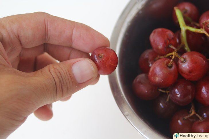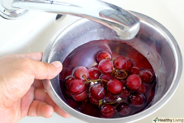 Приберіть пошкоджені і підгнилі ягоди.уважно перевірте, чи немає на гілочках ягід з лопнула шкіркою або з ознаками гниття. Якщо ви знайшли такі виноградини, видаліть їх і викиньте в сміття. Усередині таких ягід можуть перебувати бактерії, пестициди або інші небезпечні речовини, які неможливо змити.[7]