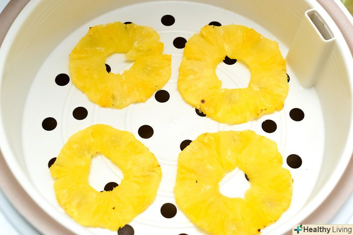 Покладіть ананаси на лотки дегідратора.переконайтеся, що скибочки ананаса розподілені рівномірно і між ними є простір.