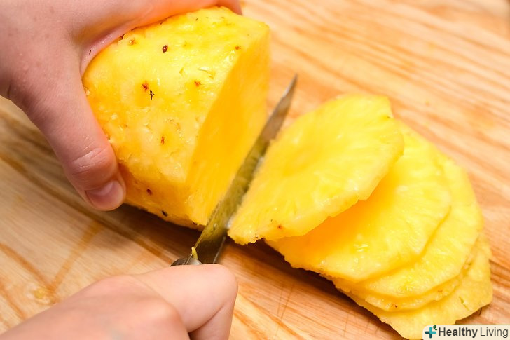 - Цей метод нарізки ананаса вимагає деякої практики, але зате дозволяє видалити очі і шкірку разом, зберігаючи більше м'якоті.