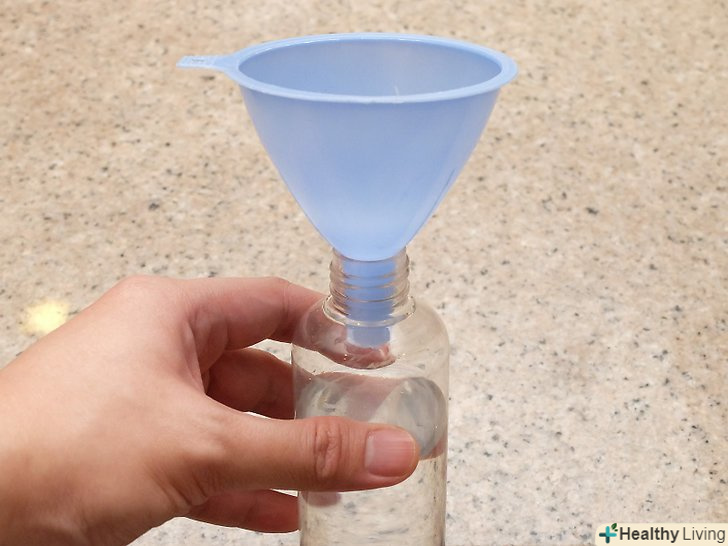 Приготуйте в пляшці розчин оцту у воді.якщо ви нещодавно зібрали яблука в саду і вони дуже брудні, недостатньо просто вимити їх у воді. Щоб як слід відмити яблука від бруду і прилиплого сміття, вам знадобиться оцет. Налийте у велику пляшку три чашки (близько 750 мл) води і одну чашку (250 мл) столового оцту. Потрясіть пляшку, щоб змішати рідини.[5]