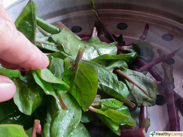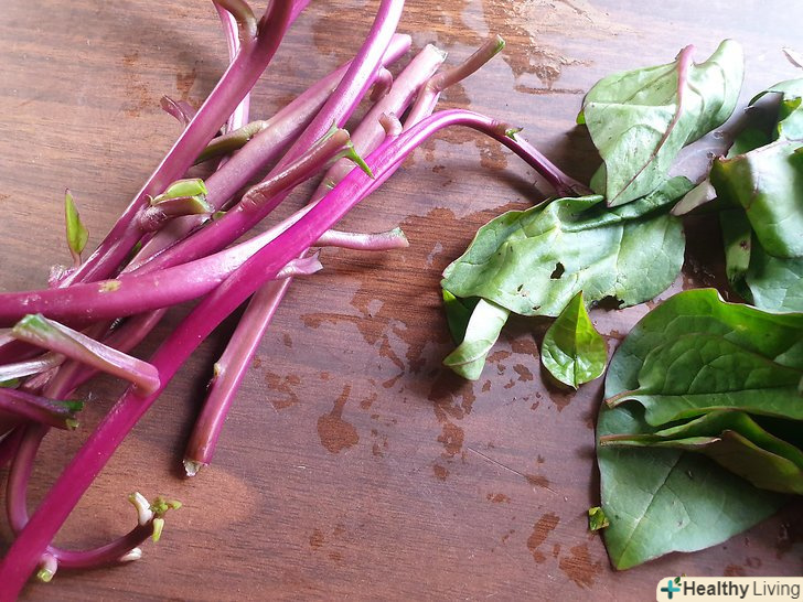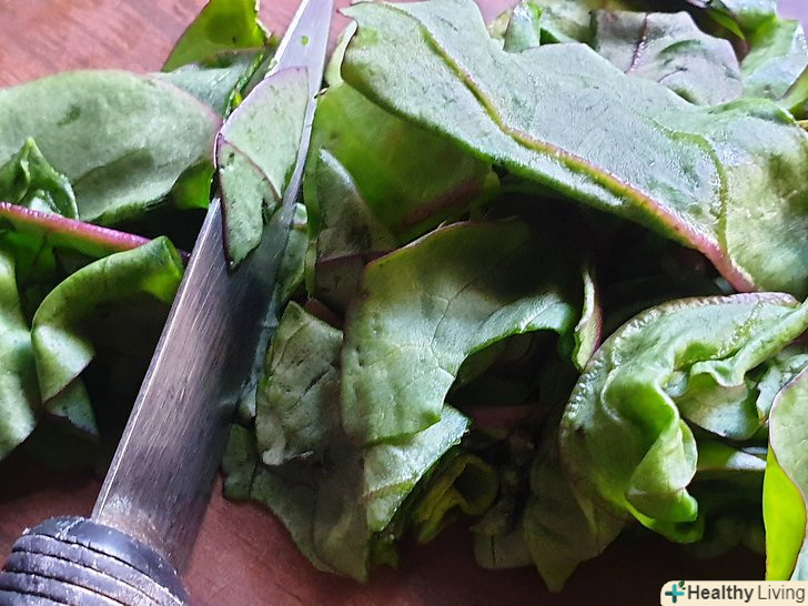 Видаліть листя мангольда.відірвіть листя від стебел і центральних ребер. Порубати їх і помістіть в миску.[2]