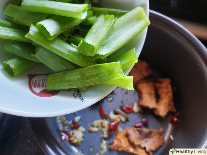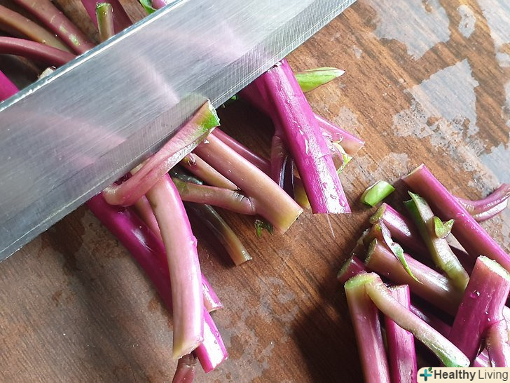 Порубати стебла і серединні ребра мангольда.поріжте їх на шматочки в 2-3 дюйма (5-7 см).
