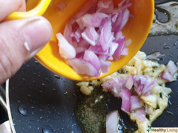 Змішайте 1 ст.л. подрібненого часнику з половиною маленької червоної цибулини, нарізаної кубиками.перемішуйте їх, як мінімум 20 секунд, поки суміш не почне пахнути.