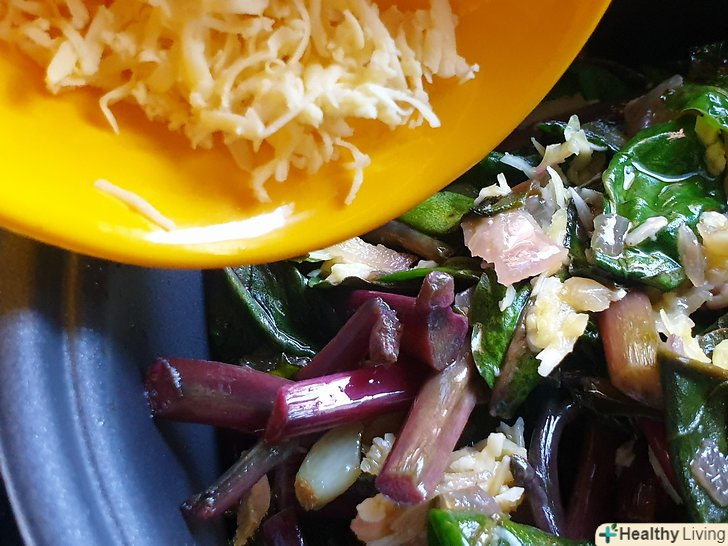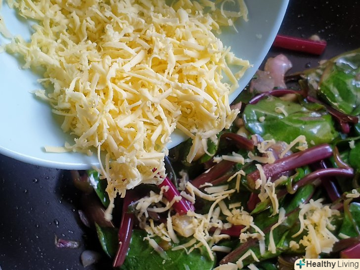 Посипте мангольд 2 чашками тертого сыроа Пармезан.нехай мангольд постоїть, поки сир не розплавиться.-