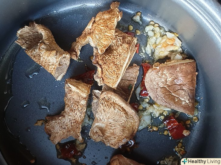 Додайте гриби в суміш.перемішуйте гриби, поки вони не пом'якшилися і почали випускати рідину. Це повинно зайняти 3-5 хвилин.