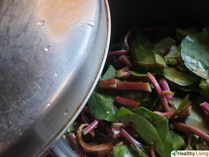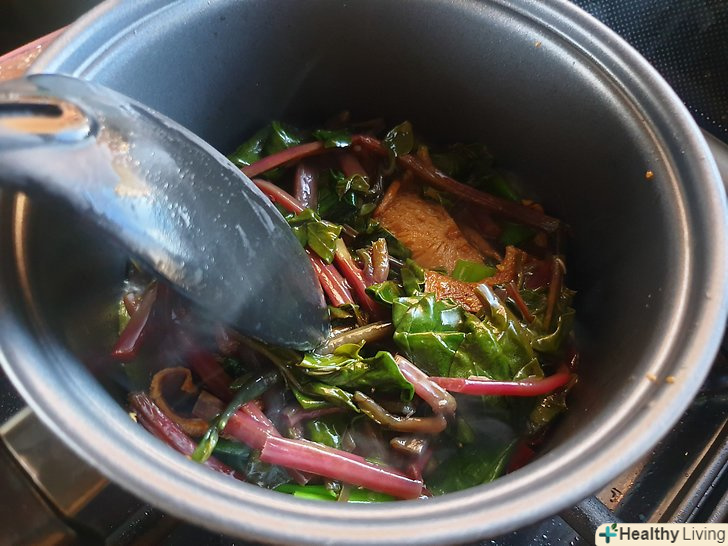 Пропарьте мангольд в пароварці.додайте товсті ребра в пароварку за кілька хвилин до того, як покладіть зелені частини листя. Листя будуть готові через 1-2 хвилини. Мангольд готовий, коли він прив'яв і став ніжний.