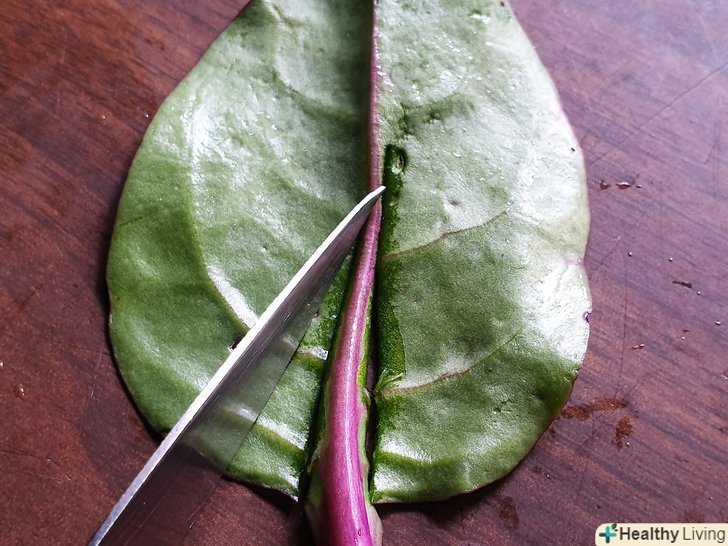 Видаліть центральні ребра і стебла мангольда.вони вам не потрібні в цьому рецепті.[4]