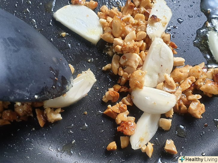 Додайте 4 тонко нарізаних зубчики часнику.готуйте протягом хвилини, до тих пір, поки часник стане ароматний, але не підрум'яниться. Це повинно зайняти близько 1 хвилини.